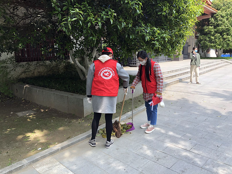 此次活动主要是对公园道路旁、草坪里的杂草、垃圾进行清除。志愿者们身着红马甲,佩戴口罩、手套做好个人防护,带上清扫工具,分工明确、有条不紊地将道路旁、花坛间落叶杂草及烟头、垃圾打扫的干干净净。