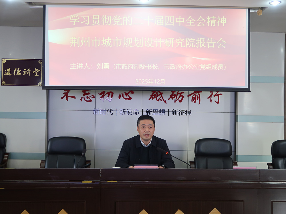 12月17日下午,荆州市政府副秘书长、市政府办公室党组成员刘勇莅临我院,以“深学笃行全会精神 实干担当勇毅前行 以高效能服务保障中国式现代化建设”为主题,为全体党员、中层及以上干部讲授专题党课,结合规划职责与荆州发展实际,为我院后续工作明确方向。